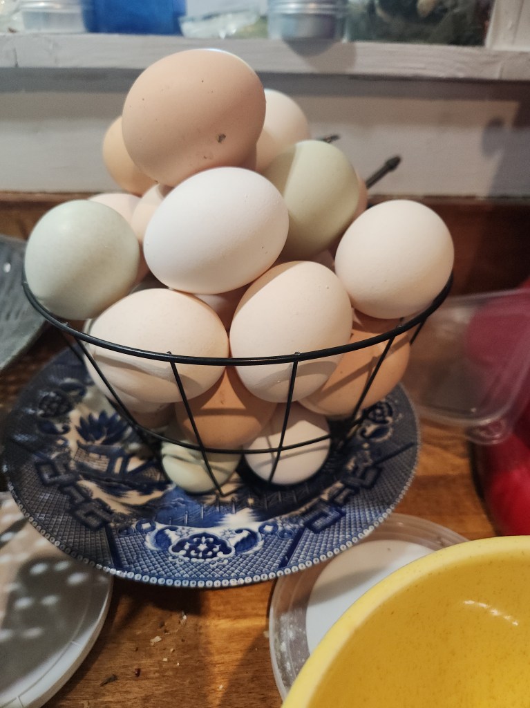 We have been blessed to have a warm home, food in the frig, and the ability to cook meals from ingredients. The chickens give almost an egg a day during these cold drab days, so another blessing, and the pullets are growing, so there is a promise of more eggs on the spring. And the older ones have become meat in the freezer, another life skill learned in recent years.