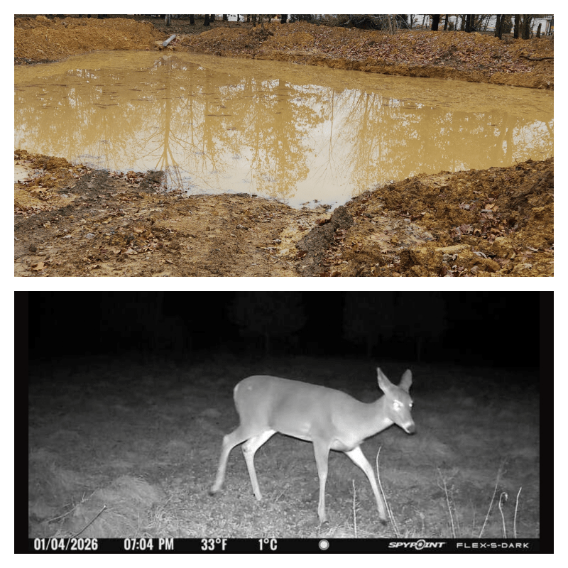 While we were checking things out around the property, we jumped a few does in different areas, fixed a barb wire strand that had some deer damage. The tracks and the trail to the fence told the whole story. It was grey cool day, but it does my mind good to get out and lay eyes on the acres we have worked so hard to clear and maintain, from what it was when we bought it several years ago.